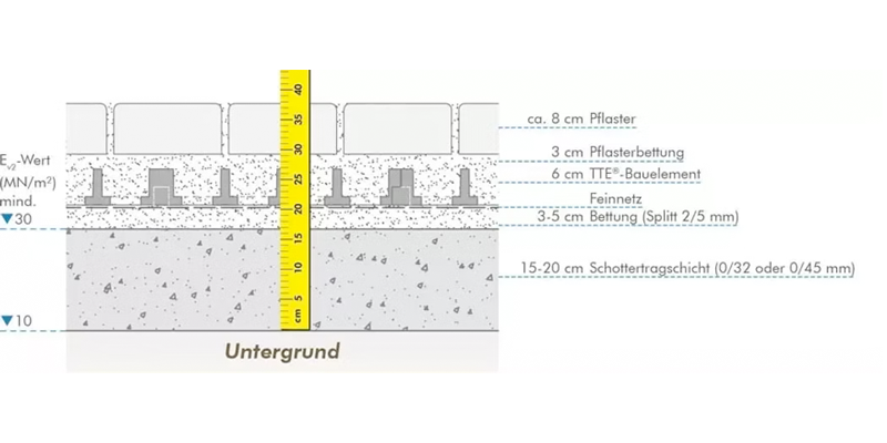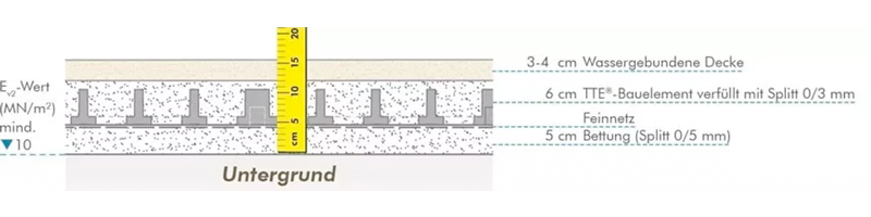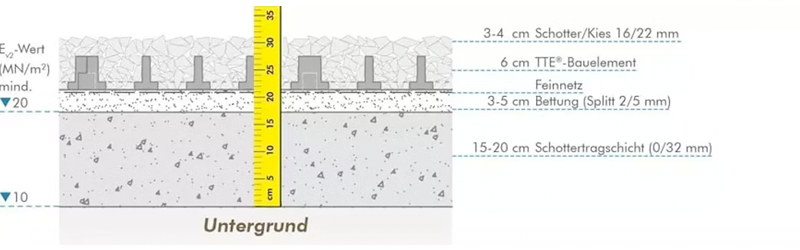 angenehm begehbare und trittfeste Befestigung aus Schüttstoffen