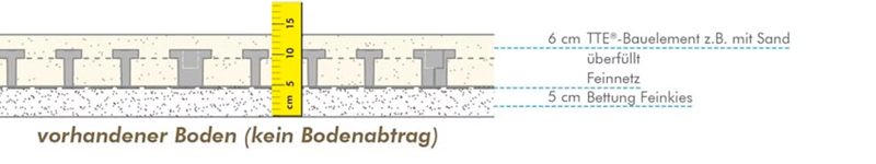 wird direkt auf den Baugrund verlegt (OBEN-Aufbau, kein Bodenaushub)