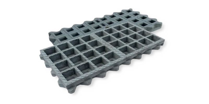 als Oberflächenbefestigung (begrünt, bepflastert oder bekiest) sowie als Unterbau einsetzbar (Sportflächen und Tierhaltung)